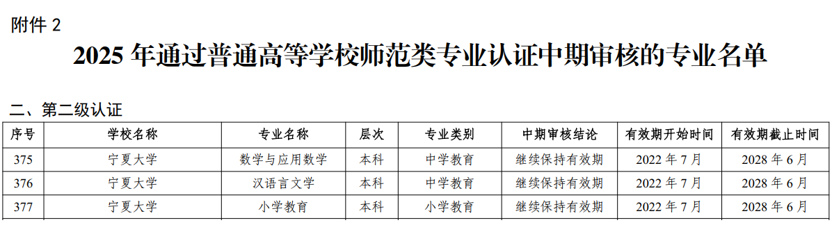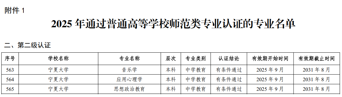 近日,教育部办公厅发布《关于公布2025年通过普通高等学校师范类专业认证专业名单及中期审核专业名单的通知》(教师厅函〔2025〕18号)。我校音乐学、应用心理学、思想政治教育等3个专业通过师范类专业第二级认证,有效期六年;数学与应用数学、汉语言文学、小学教育等3个专业通过师范类专业认证中期审核,继续保持原认证有效期。至此,我校14个师范专业已全部通过师范类专业第二级认证,标志着我校师范人才培养体系质量建设取得重要阶段性成果。